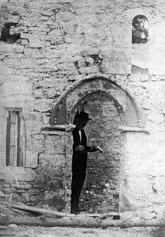 Photo of the newly uncoverd priest's door and low side window taken during the rebuild of the chancel in 1866/7.