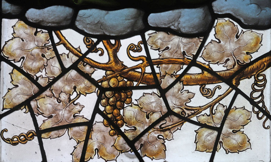 Some of Bacon's work is characterised by cramming as many faces into a window as possible, perhaps reflecting the style of 15th century artist Martin Schongauer, and his windows in St Barnabas are no exception. Perhaps the most striking examples of his occasional dalliance with crowded scenes can be found in the already mentioned Te Deum east window in All Saints, Bournemouth, Dorset, which, including the angels boasts over sixty figures, all jostling for position in a window with seven narrow lights (See Flickr). The east and west windows in St Barnabas are not quite as crowded as that in Bournemouth, but they are nowhere near as large. That is not to say the windows in St Barnabas are bad. Far from it. The art work in the east window is exquisite, and the workmanship superlative. Each of the characters exudes a dynamism often lacking in stained glass. The east window alone shows a dignified refinement normally reserved for much larger (and wealthier) edifices. It is perhaps fortunate for St Barnabas that Percy and Clara Bacon were such significant congregants. The east window would be the last of the three windows by Percy Bacon in St Barnabas.
