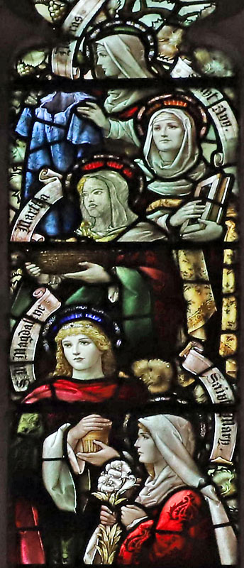 Middle right: Ss Dorcas, Ann, Martha, Mary Magdalene, Blessed Virgin Mary.