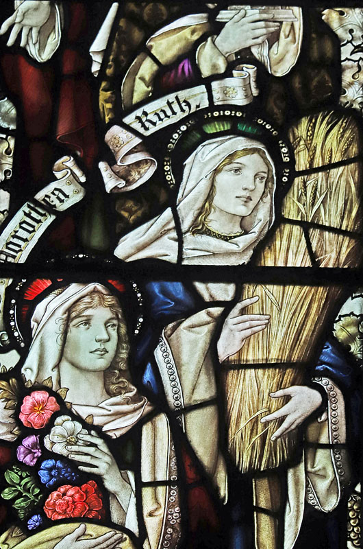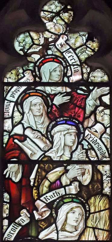 Middle left: Female saints: Cecilia, Anna Prophetess, Frideswide, Ruth and Dorothea.