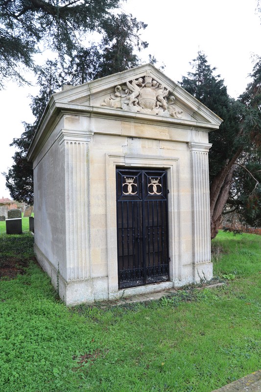 Close by, in the field to the south of the church stand the remnants of the gateways of a grand house built in a "Heidelberg style" by William Craven, 1st Earl Craven, in the late 17th century for his beloved Elizabeth, the exiled Queen of Bohemia. The architect was Balthasar Gerbier (it was his tombstone that was uncovered in 1929). The house was destroyed by fire in 1718, and although partially rebuilt it never attained its previous grandeur. By 1813 it had been comprehensively demolished leaving only the brick gate-piers and some walls standing. The grandeur of those gates can be seen in an engraving from a book charting the development of English Ironwork.2 The Craven mausoleum stands in the churchyard.