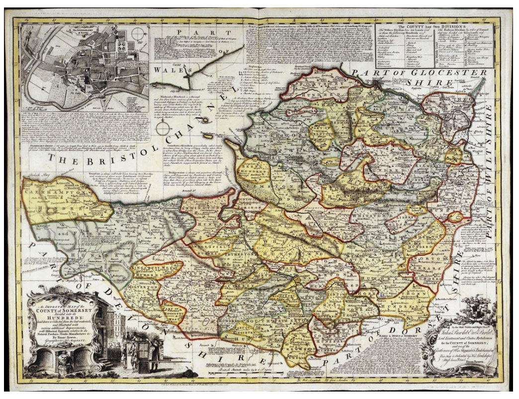 In about 1750 Eman Bowen presented a map of Somerset to John Poulett, 2nd Earl Poulett, who was then Lord-Lieutenant of the county. At the time Bristol was a sizeable town of 50,000 or so souls, but what is strikingly revealed on the map is how small it actually was. The areas south of the Avon and to the east in Gloucestershire were largely undeveloped, and unpopulated. The map also presaged something of what was to come. Near the village of Bedminster a small note provides a clue: