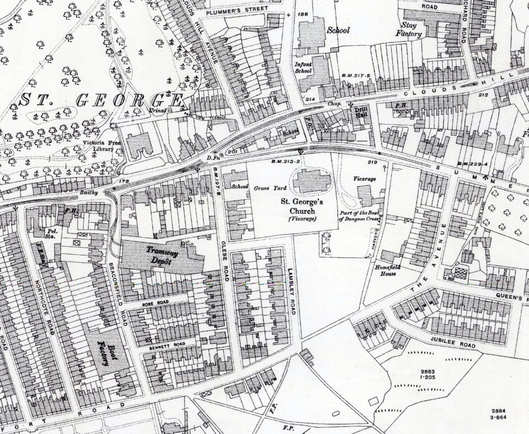 The first coal was mined in Kingswood to the east of Bristol, and then at Bedminster to its south. In both areas collieries sprang up along with the housing catering for the influx of workers from the countryside.1 Serving the people's spiritual health was the church of St Philip & St Jacob in the centre of town whose parish extended for several miles to the east. It was clear that new parishes were needed and as a result the Parish of St George was created in the mid 18th century. A large plot of land off Summerhill Road was given by a local politician, Thomas Chester, a site large enough for a substantial church and vicarage. The foundation stone was laid in March 1752.2 The early church of St George was plain, English Baroque in style, and from the look of the 1821 print, a little utilitarian.