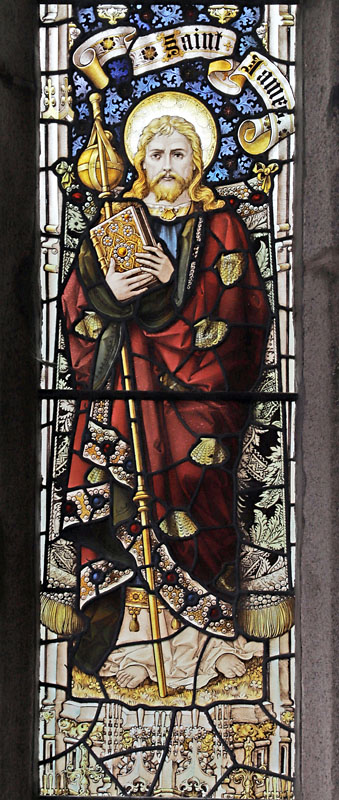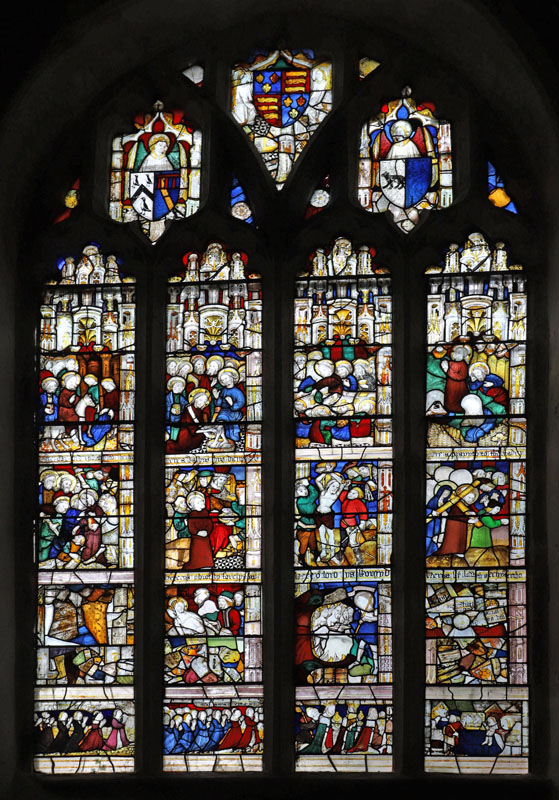 The present church was built in the 15th century and has some remarkable medieval features, not least of which is the fabulous Passion window of 1469 in the east wall of the north chapel. Click here for the story of this window's restoration. St James also has a considerable quantity of fragments of 15th century glass, documented by Michael Swift here.