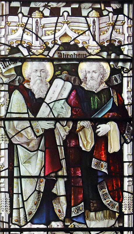 Right: Moses holding the stone tablets, and Abraham who holds the sacrificial knife.