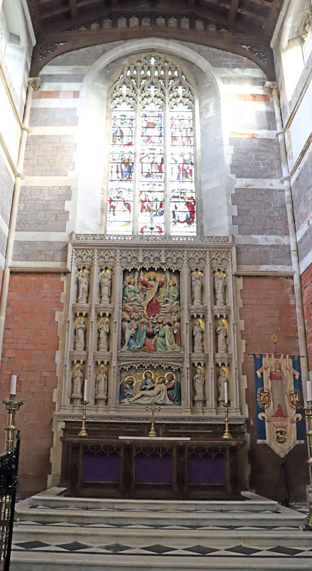 The reredos were a later, 1913 addition designed by George Fellowes-Prynne,4 and executed by Messrs. H. H. Martyn & Co. of Cheltenham.5
