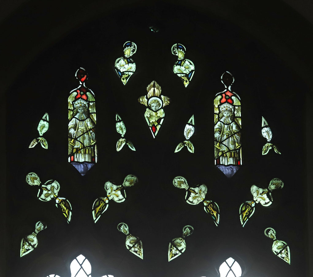 By August 1912 it was reported that upwards of £1,848 had been spent on stained glass at Holy Trinity,4 and by September 1924, all but one of the windows in the nave had painted glass.5 Aside from the reset figures illustrated above and the remnants of glass in most of the tracery lights, there are a few glimpses into the subject matter of other windows in the church which were filled with glass from the Bacon Studio. What has been collated to date is described below.
