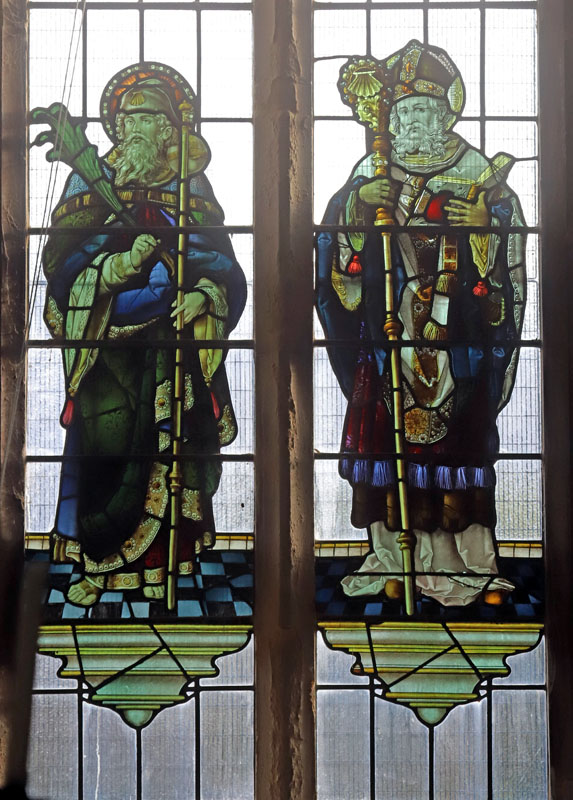 The Builder1 reported the installation of a large two-light window in the south aisle depicting St Philip and St James as Bishops, with small subjects beneath each. The report did not elaborate what the subjects were, but it is possible they portrayed scenes of the saints' acts or an episode in their lives similar to those in St Lalluwy, Menheniot, Cornwall.