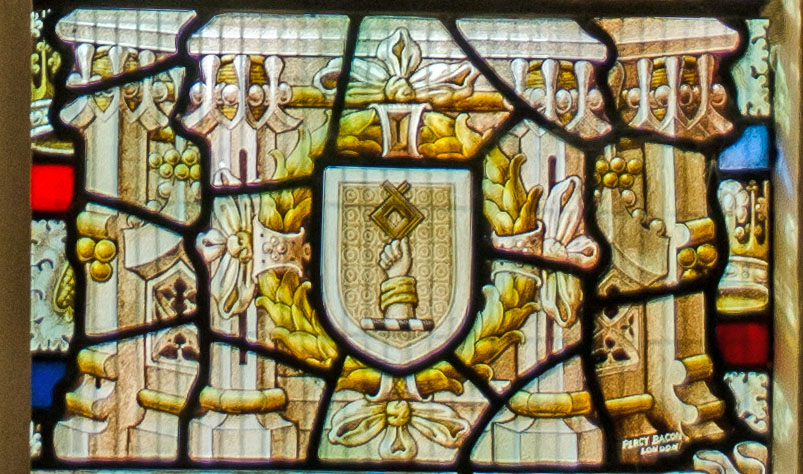 The window is signed bottom right, "PERCY BACON, LONDON".