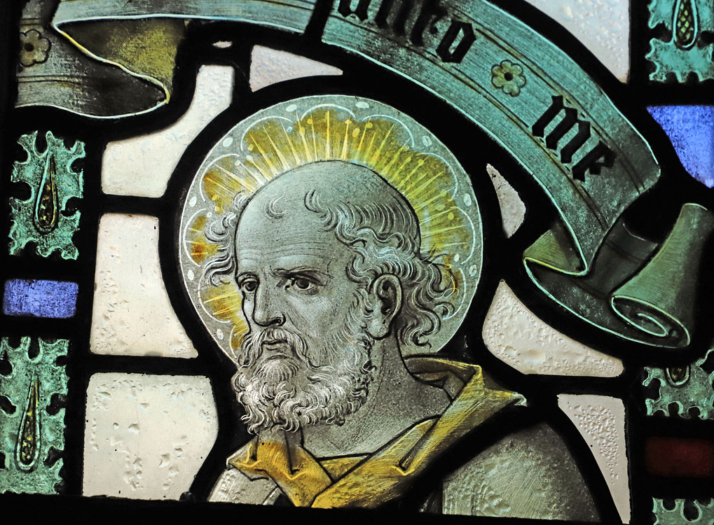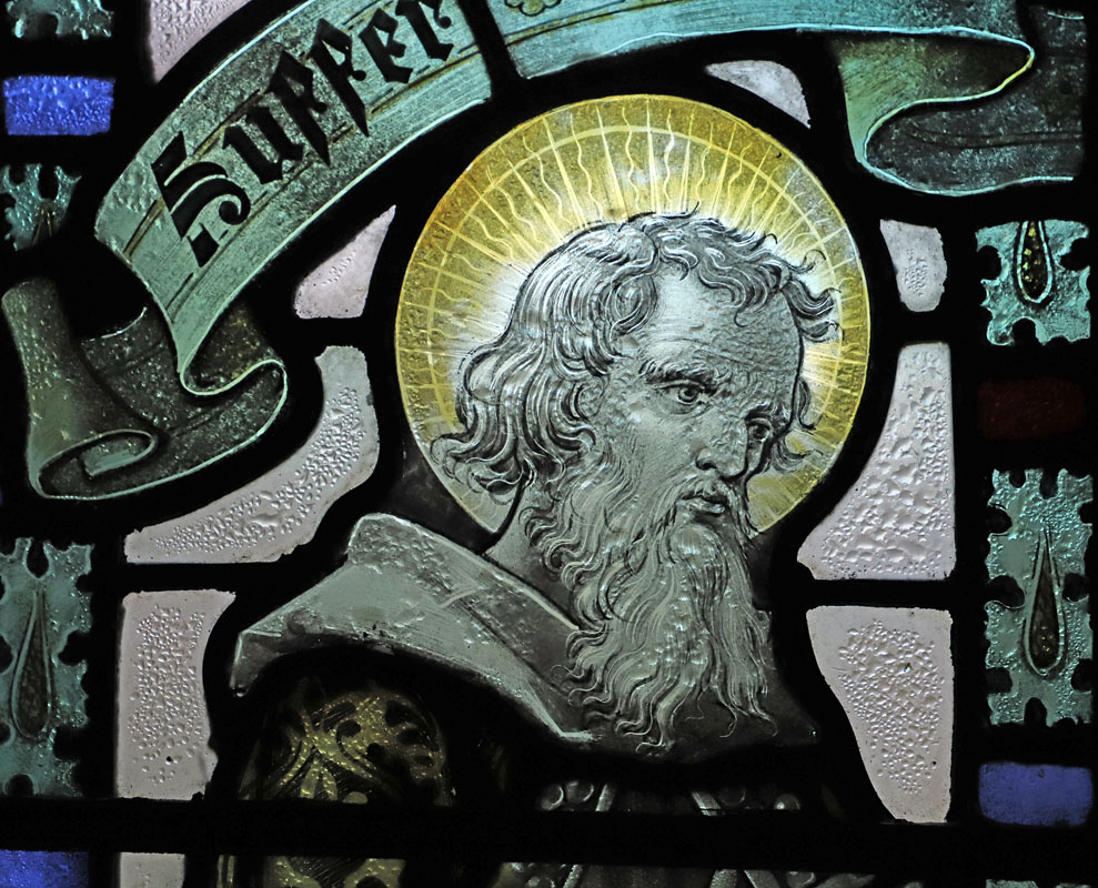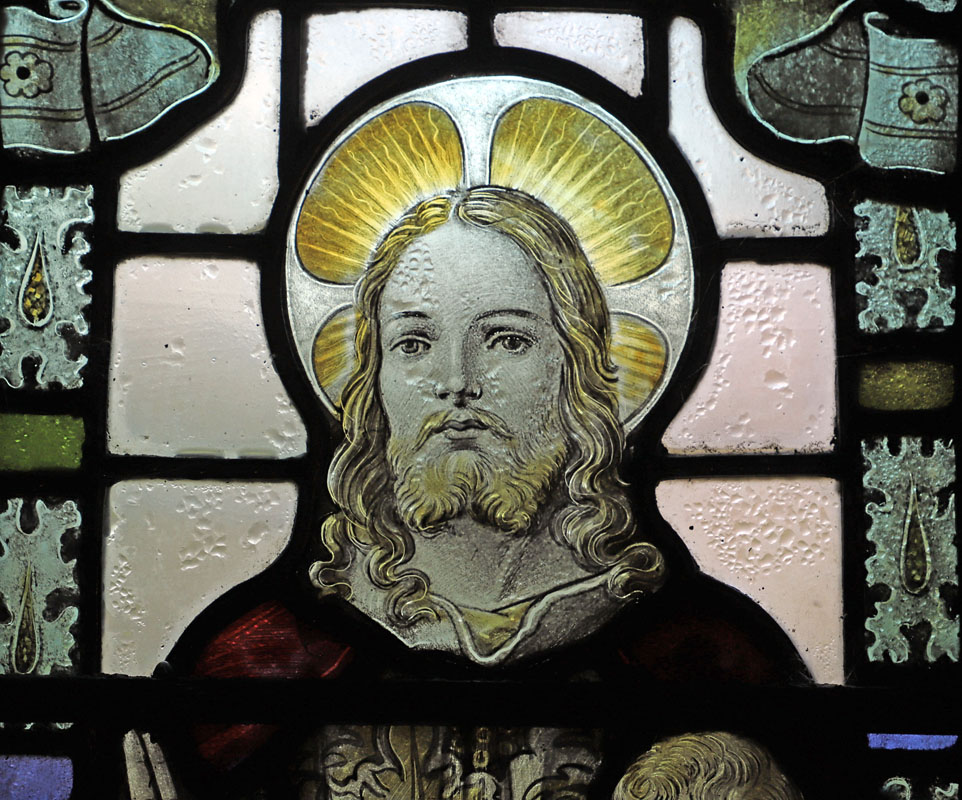 The small three-light, square-headed window in the baptistery at the west end of the north aisle was almost certainly installed as part of the 1913 rebuild of St Mark's. Percy Bacon was George Fellowes-Prynne's stained glass artist of choice, and although the window is unsigned, and no definitive corroboration has yet come to light, the attribution is fairly safe.