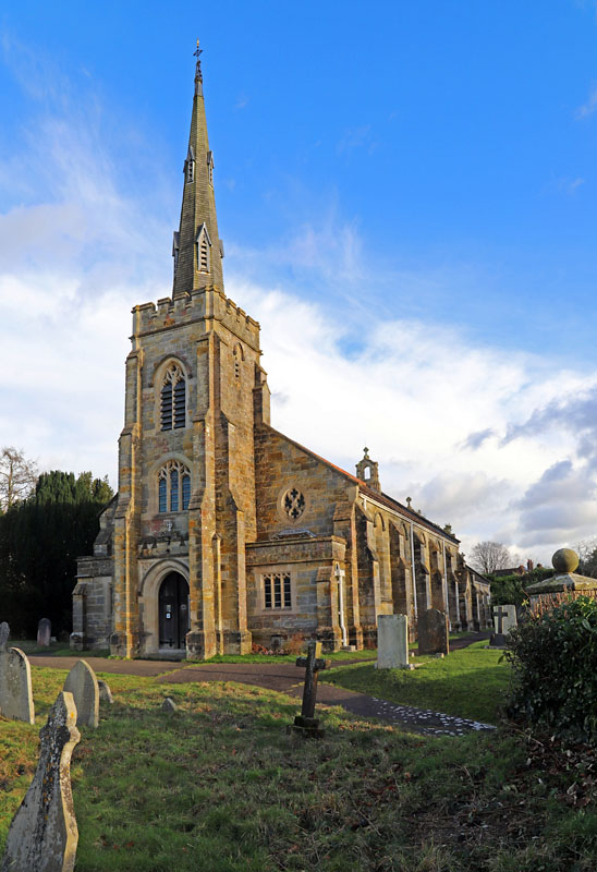 we see today was largely rebuilt by George Fellowes-Prynne in 1912/13, the original church dating from 1836 having fallen into decay. Pevsner says little, but does rhetorically ask how much of the earlier church Fellowes-Prynne actually preserved. Lady chapel altar paintings are by George's brother, Edward, and two of the stained glass windows are attributed to Percy Bacon & Brothers.