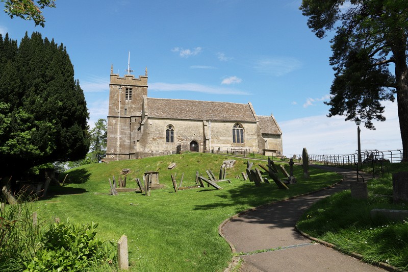 More proasaically, another reason might be suggested for St Bartholomew's location if one ascends on many of the paths to the site. On reaching the top of the hill it is clear that this would have been a very strategic location commanding views in all directions, but especially on the approach from the north and south along the Vale of Gloucester as well as the Severn Valley. The hill was used by Iron Age Britons, the Romans as a site for a temple (supposedly), later to be surpassed with a pre Norman church, and later still a Norman Church. Even Cromwell saw the hill's strategict advantage drawing up his entrenchments and artillery batteries there at the Siege of Gloucester in 1643.