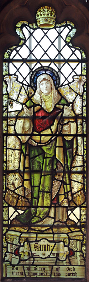The subject matter was doubtless informed by the name of the dedicatee, Sarah Elizabeth Williams. The window was given by her husband and daughter. The church guide suggests that this window was installed by Powell & Sons. However, this is not mentioned in Powell's Order Books so cannot be verified.