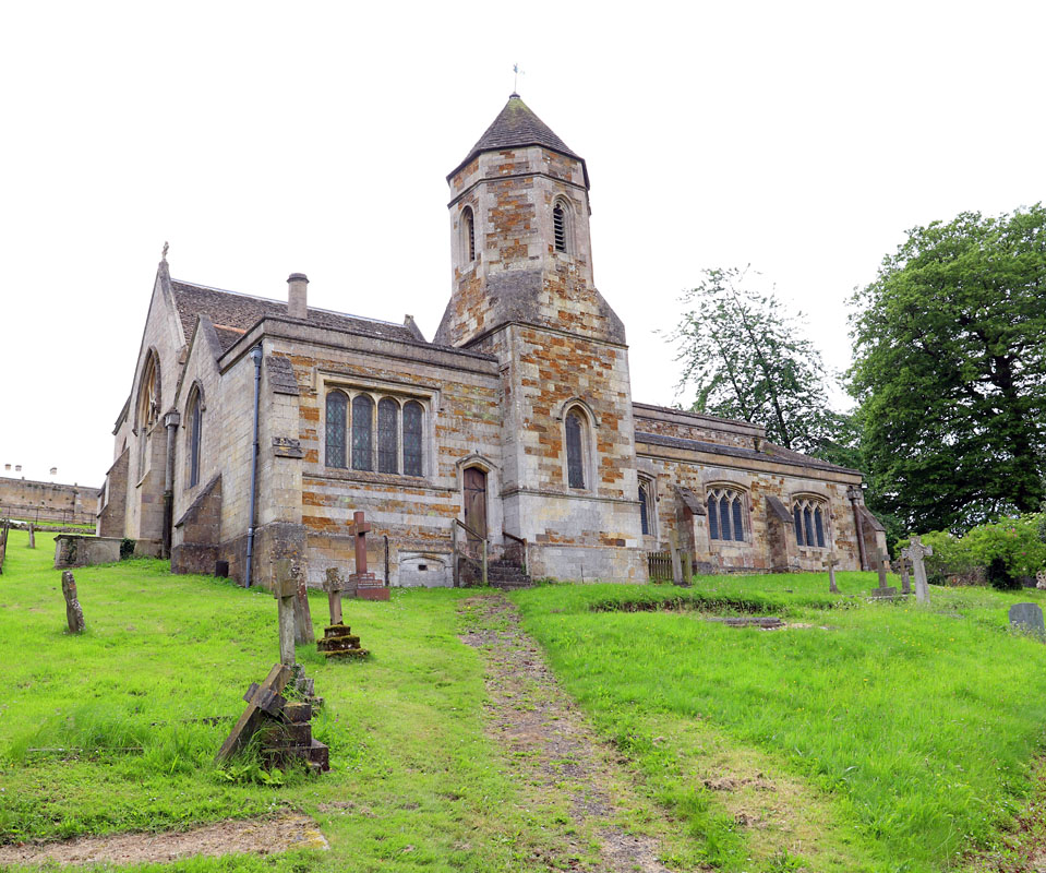 On a sunny morning, and away from the traffic rumbling through the delightful chocolate box village of Rockingham, it is a pleasure to turn the corner and enter a tree-shaded path with splendid views over the Welland Valley and walk up the hill to the unusual church of