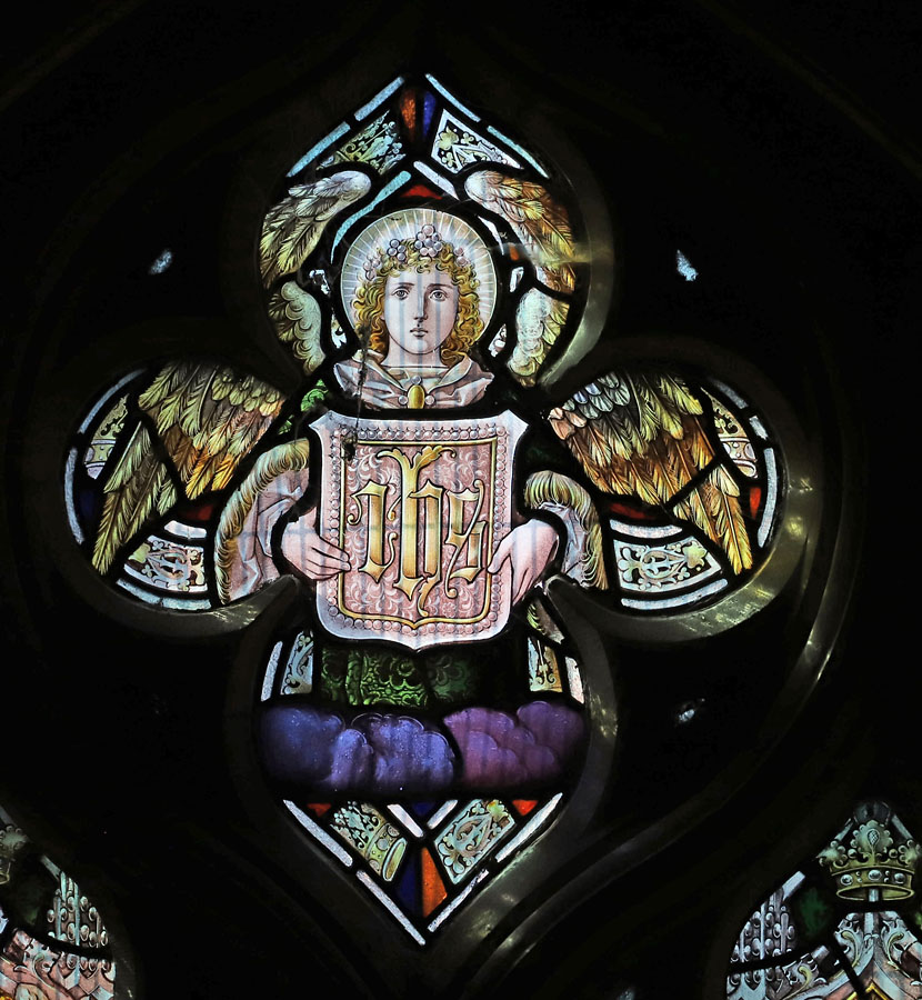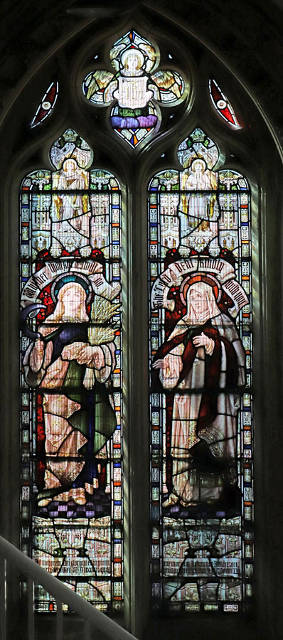 There is a single Percy Bacon & Brothers window in St Mary's, in the west of the tower. The subjects are Ruth and Naomi. The window was inserted in 1906 and replaced an earlier, smaller window.1 A rudimentary drawing