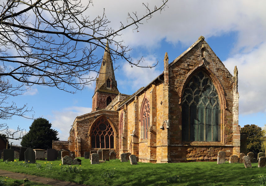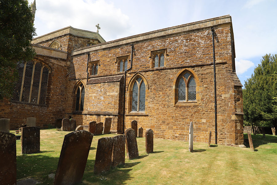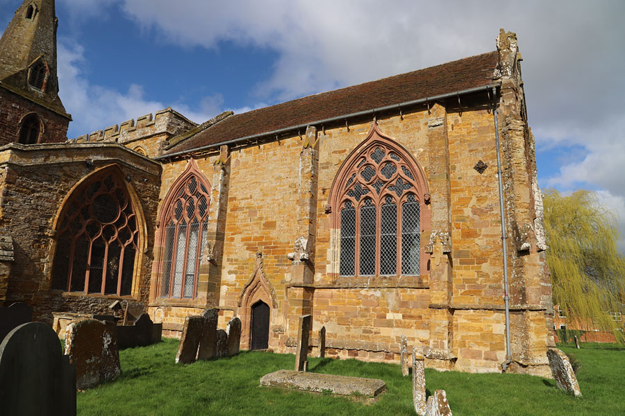 St Peter's is c14. There are three Decorated windows in the south chancel with the low side window added beneath the sill of the westernmost. This is now blocked, and there is no trace left internally.