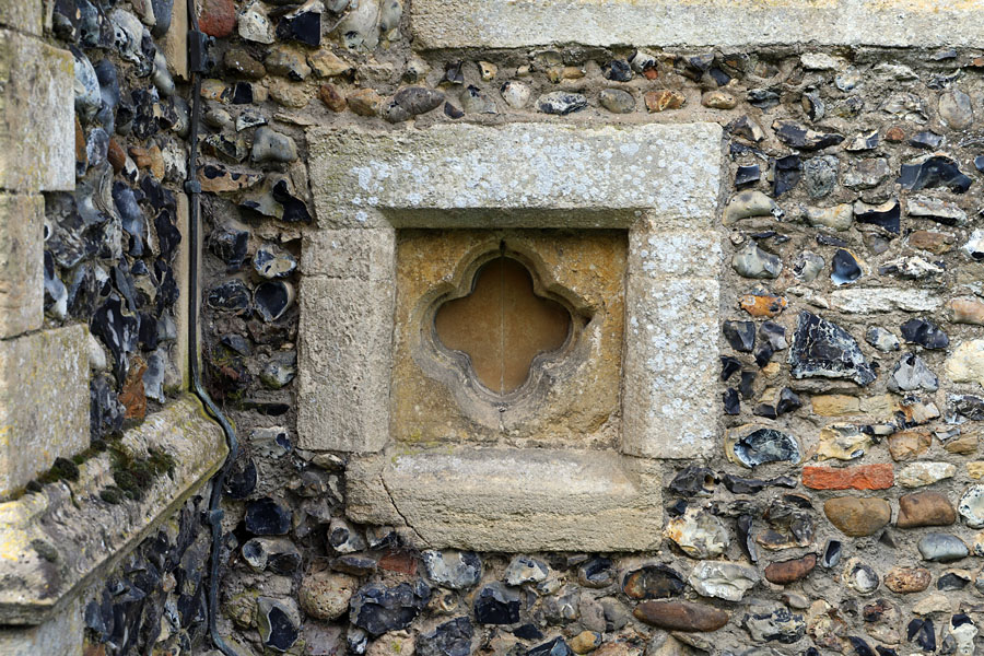 St Nicholas, Stanningfield, Suffolk. External detail of the low side window.
