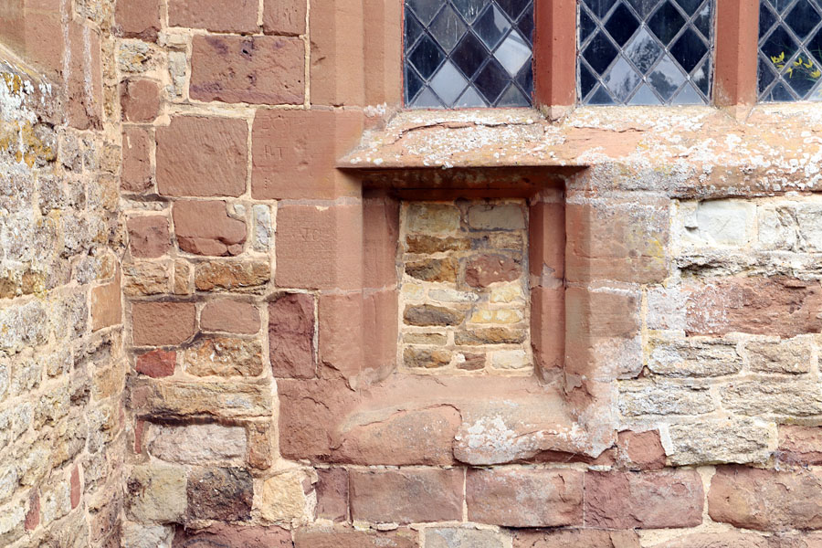 St Peter, Grandborough, Warwickshire External view detail. Note the modified sill of the original window, and the left jamb which has been carefully run down to the sill of the low opening.