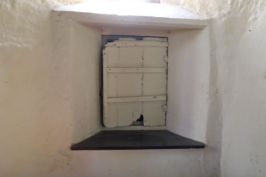 - Sometimes have hooks for hinges in situ; evidence of having had wooden shutters, or which actually still possess wooden shutters.