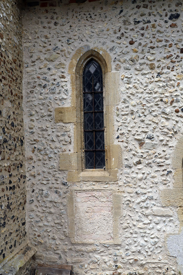 the low side window at the western end on the north side of the chancel is identical in style (though smaller) to the three lancets to its east, which would suggest that it was installed as part of the chancel rebuild. An Inventory of the Historical Monuments in Hertfordshire (1910) dates the rebuilding of the original 13th century chancel to circa 1360.9