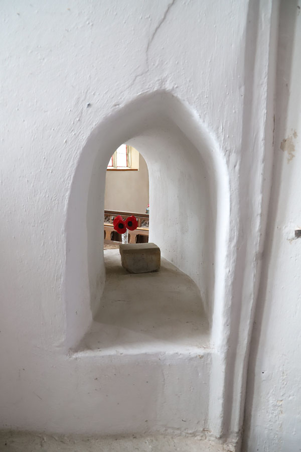 St Peter's, Fakenham Magna, Suffolk. The low side window has been formed below the original window utilising its sill as the new opening's lintel.