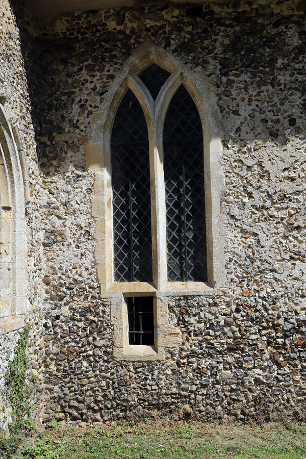 St Andrew’s, Barton Bendish, Norfolk. On the south side of the chancel a low side window has been installed directly below the original sill of the westernmost light.