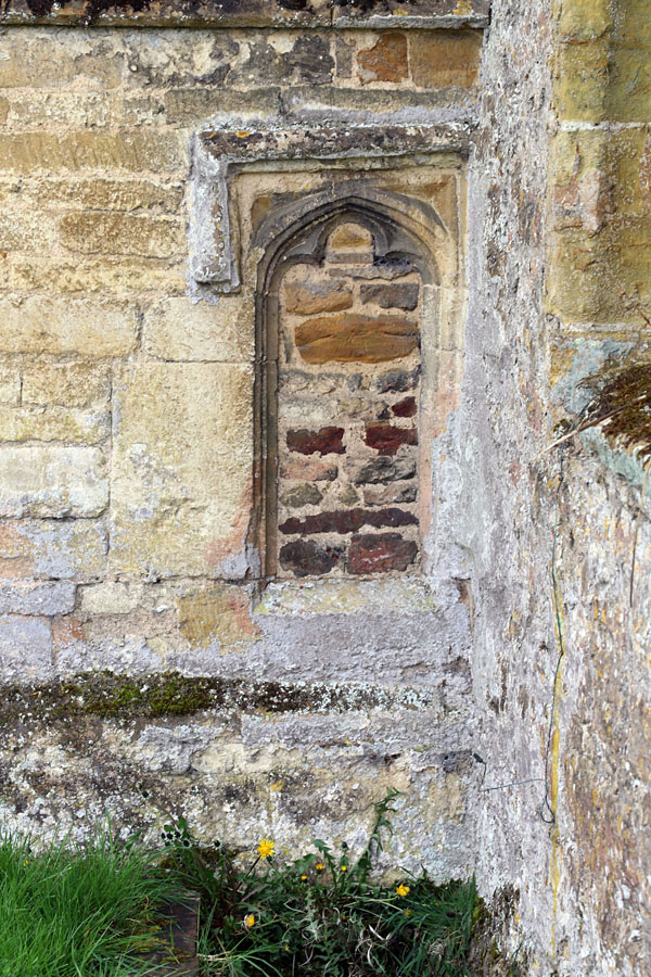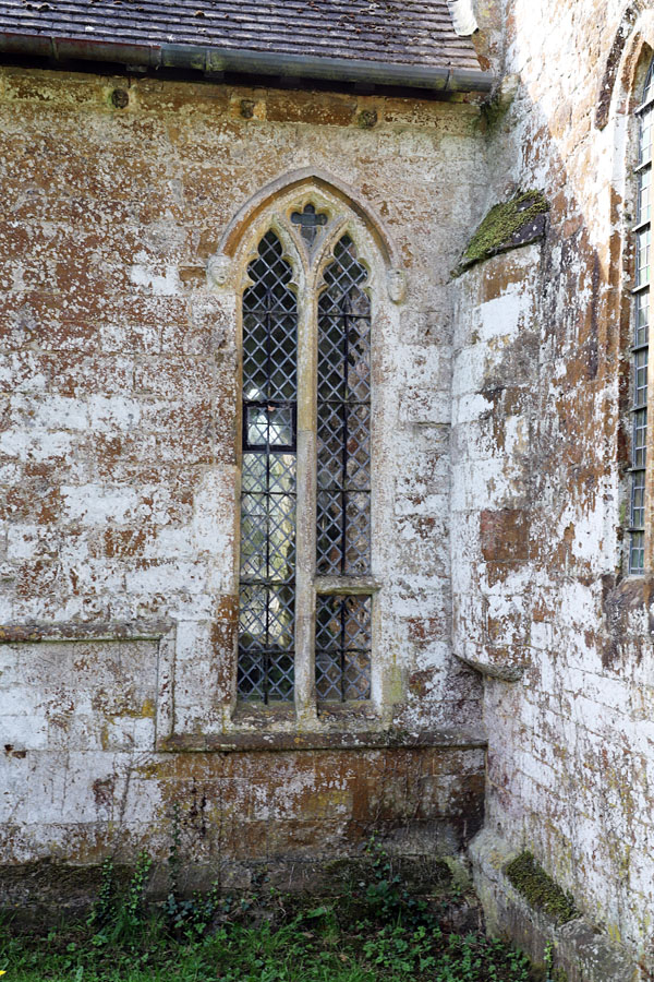 All Saints, Ladbroke, Warwickshire. The low side window has been formed below the original window utilising the sill of the most westerly of the 2-light window as the new opening's lintel.