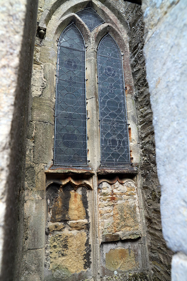 - Modified openings: A pre-existing window is both close enough and low enough to the western end of the chancel to be used for confessional purposes, and is modified by simply inserting a casement at its base.