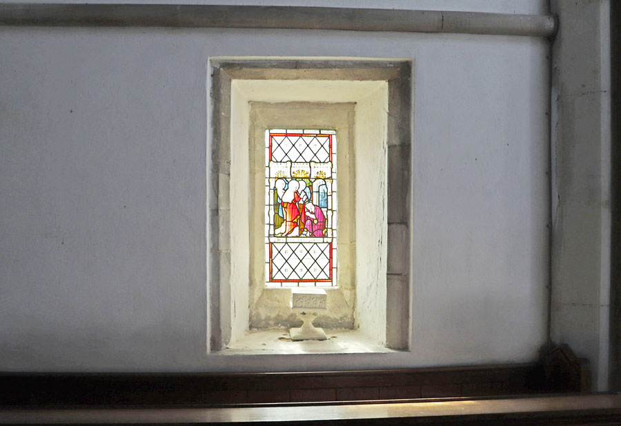 The low side window on the north side of the chancel is a simple small lancet, in the same style as the other windows on this side. It is set slightly to the east as the north aisle extends beyond the junction of chancel and nave.