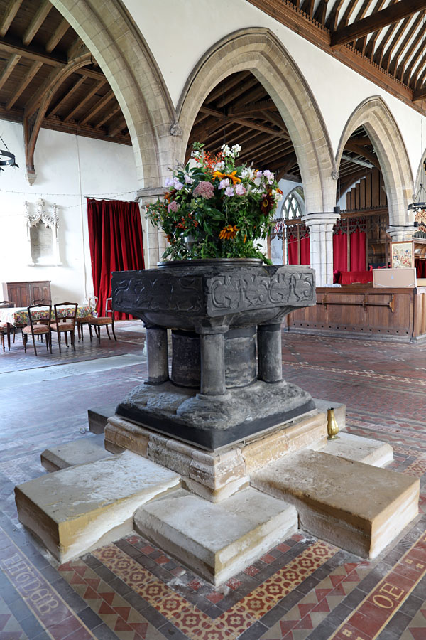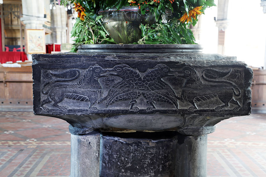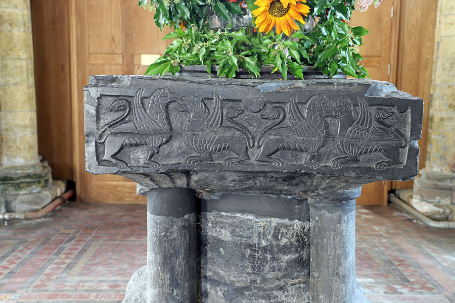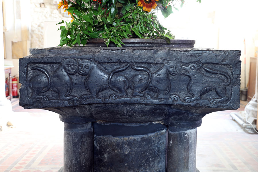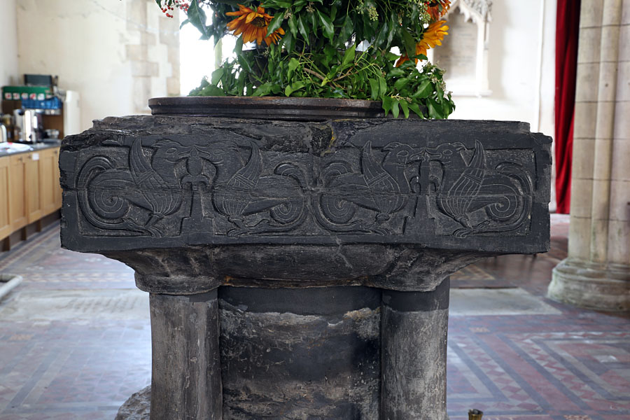 Entering the village of Thornton Curtis the road signs proudly proclaim, "Home of a Tournai font", and it is well worth a little detour. The display board in the church proclaims it as, "One of the greatest treasures within the church". The font was made in the 12th century and carved out of a block of black marble (or limestone) found on the banks of the River Scheldt at Tournai (now in Belgium). It is one of a just seven complete examples surviving in England. Due to their size and weight the final destinations for these fonts were chosen for their proximity to rivers, as transportation over long land distances would have been considerably more difficult. The Thornton Curtis font is likely to have been transported up the Humber Estuary. There are two examples in Lincolnshire, one at Thornton Curtis, and the other in Lincoln Cathedral.